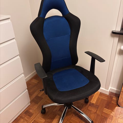 Kontor/gamer-stol i grå på hjul.