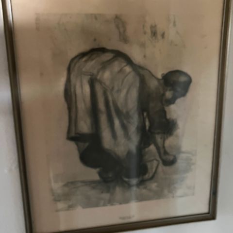 To tryk med motiver af arbejdende bønder i marken malet af hollandske Von Gogh. Måler 40x50 cm. Uden ramme. Samlet pris.