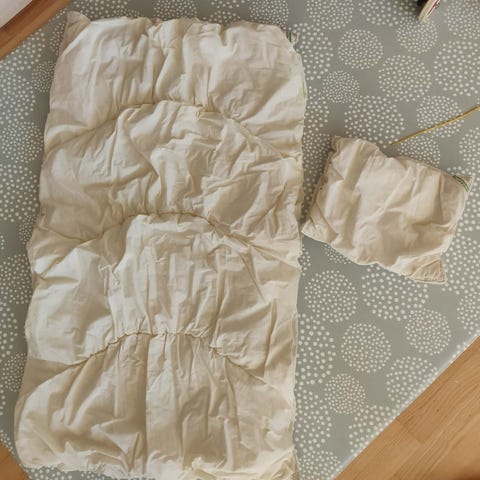 1 rigtig god, danskproduceret juniordyner med tilhørende pude - med dun, brugt til vores søn :-)