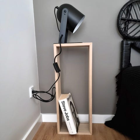 Praktisk møbel med mange anvendelsesmuligheder: Sidebord/bogkasse med en bredde/højde på 35/30. cm hhv 30/35 cm. eller en opsats med en højde på 60 cm.