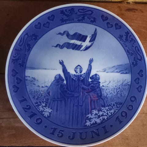 Platte, Royal Copenhagen, 1920, Veteranplatte, Dannebrog ved Kongeåen.