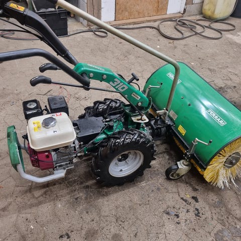 Fin ældre Texas stor fejemaskine, startet op sidste år, der kørte den fint. Skal ha lidt i dækkene