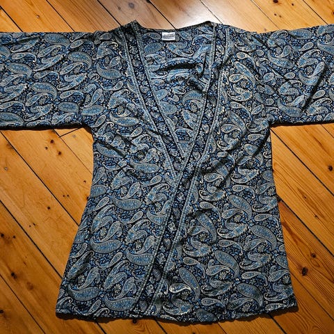 Fin kimono købt i Japan, aldrig brugt. God kvalitet. Sort/mørk lilla.