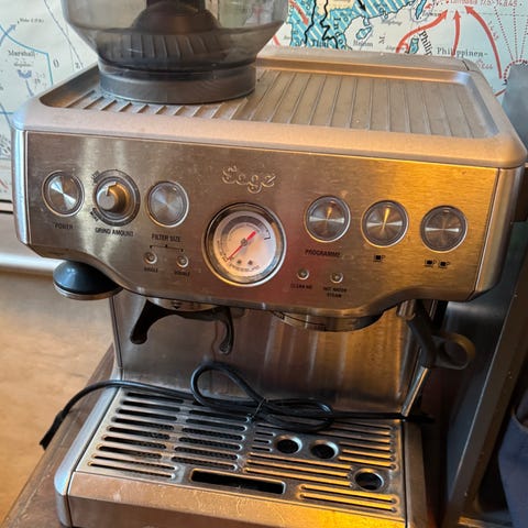 Maskinen fungerer upåklageligt og har været vedligeholdt med stor omhyggelighed. Det er en rigtig god kaffemaskine - både til dem, der er novicer men også dem, der går op i en velskænket kop kaffe.