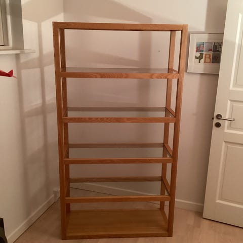 Reol i olieret egefinér med 5 hylder.