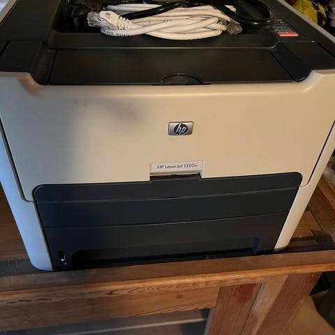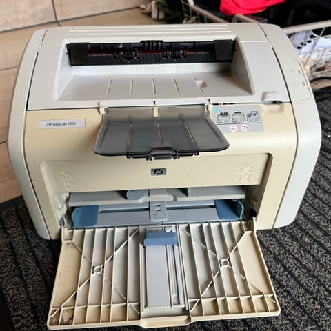 HP LaserJet 1018 Printer med sort-hvid udskrift. Kompatibel med standard papirstørrelse og designet til hjemme- eller kontorbrug.