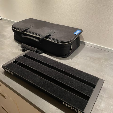 Brugt men velholdt Pedaltrain Nano med Velcro, taske og forboret huller til en flad Cioks strømforsyning på bagsiden for at udnytte plads.