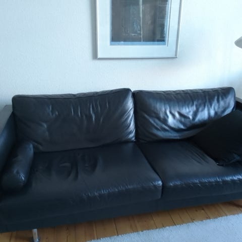 Lædersofa med 2 stole