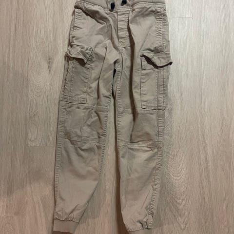 H&M Young bukser i sort farve, størrelse 164 til drenge. Fremstillet i bomuldsmateriale. Designet med elastisk talje og snøre for justerbar pasform.