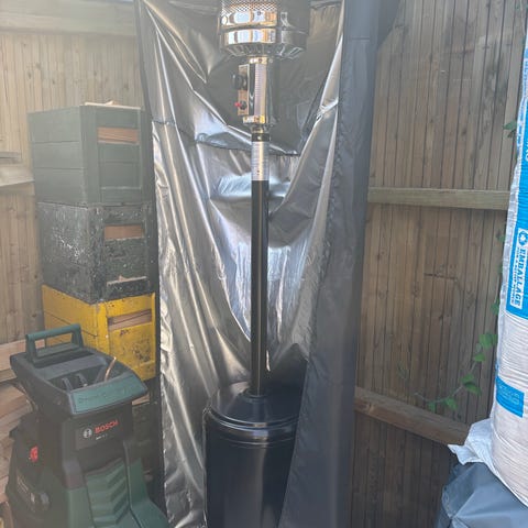 Gasvarmer i sort farve. Enheden er designet til opvarmning ved brug af gas. Produktet har en kompakt størrelse og er velegnet til indendørs brug. Materialet og yderligere specifikationer er ikke angivet.