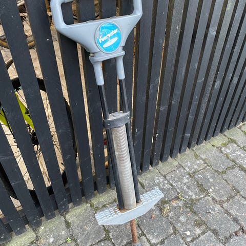 Næsten ikke brugt, men har stået i kælderen og samlet byggestøv, så den ser brugt ud. Men fjederen er som ny.