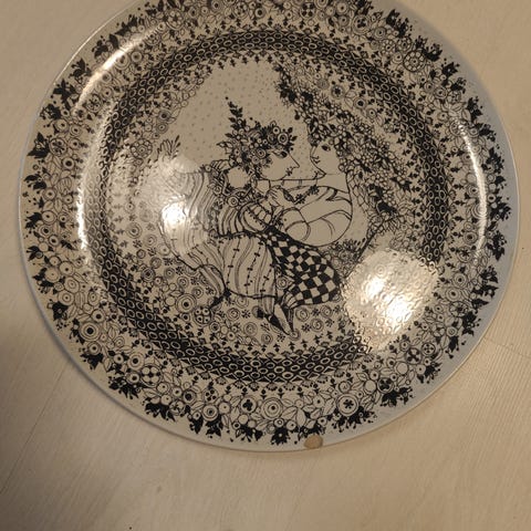 Smukt og dekorativt Bjørn Wiinblad fad fra serien "Årstiderne". Fadet måler hele 37 cm i diameter og er et fantastisk blikfang – perfekt til både vægophæng eller som centerpiece på bordet.