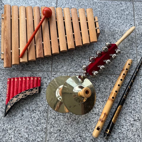 To fine rangler / musik instrumenter begge med rasle lyd.