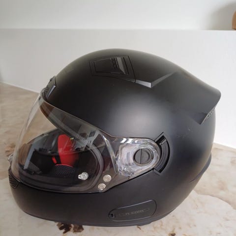 Lækker MC styrthjelm i størrelse M, passer til cirka 58cm+