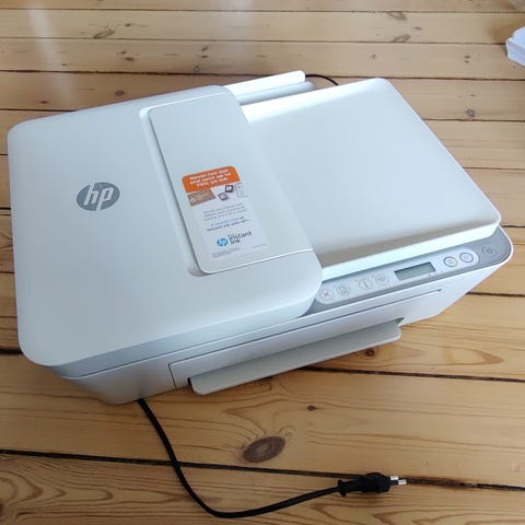 HP DeskJet 3210 Series printer i hvid farve. Kompakt printer til hjemmebrug eller små kontorer. Leveres med tilslutningskabel.