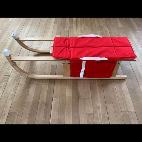 Vi har to Stiga kælke med rat, som. I er vokset fra.