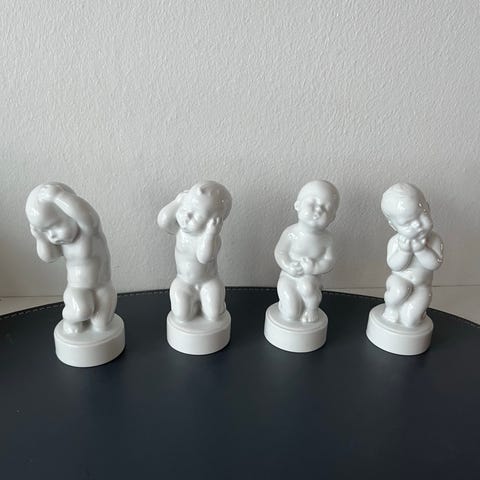 Sæt bestående af tre porcelænsfigurer, 2 tandpiner og en øre.