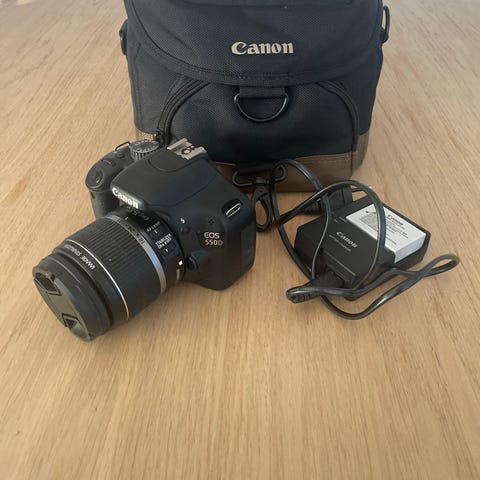 Canon EOS 550D digitalkamera med Sigma 10-20mm F4-5.6 DG HSM vidvinkelobjektiv. Kameraet kommer med Hoya 77mm cirkulært polarisationsfilter. Sættet inkluderer også kamerataske og ekstra tilbehør. Velegnet til fotografering med vidvinkelobjektiv.