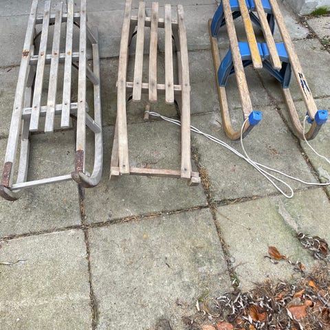Kælken har et sæde bestående af trælameller og er egnet til brug på sne.
