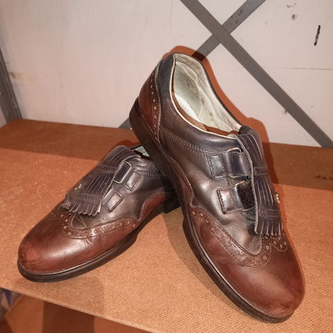 Tga Ahler herresko i størrelse 42 med brun farve. Skoene har snørelukning og en sål med mønster for bedre greb. Aldrig brugt