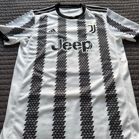 Adidas Juventus Ronaldo fodboldtrøje i hvid og sort. Trøjen har logoer for Adidas og Jeep, samt Juventus klubmærke. Nummer 7 og navnet Ronaldo er trykt på ryggen.