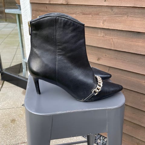 Den indvendige længde er 25,7 cm, hælen er 9 cm høj