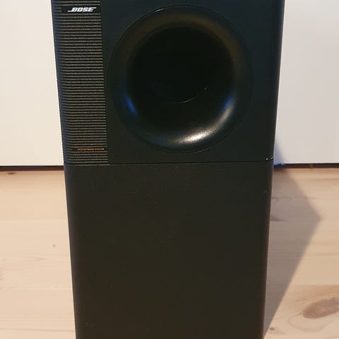 Bose AM5, ældre men i god stand. Sort subwoofer og hvide satelitter. Beslag til disse medfølger samt diverse ledninger. Kun afhentning.