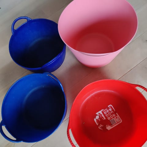 Andet, Vandspand, Nye spande blå, sort. 20 l med flad bagside, så den hænger stabilt på væggen. Som nye
