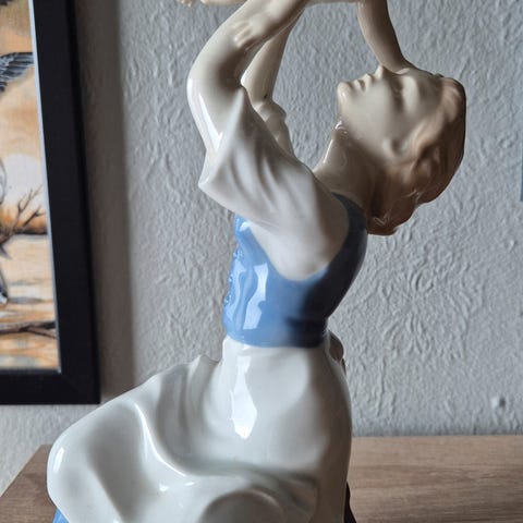 Fin gammel figur fra Tyskland forestillende barok dame, højde 14 cm. Desværre er lidt af pegefinger på figures venstre hånd knækket af; ellers i fin stand . Kender ikke mærket i bunden og ved ikke, om figuren er noget værd. Bud modtages gerne.