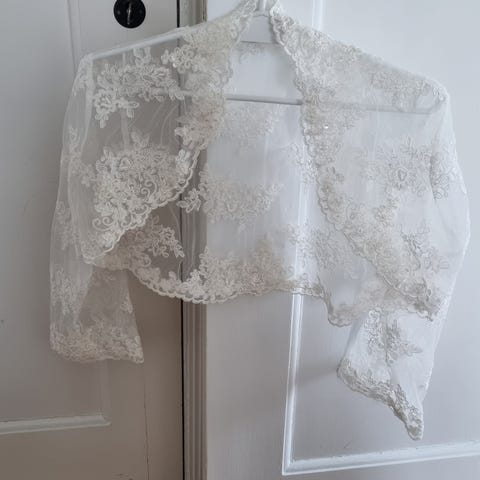 Smuk brun bolero i mink med foer. Str. S/M. Velegnet som tilbehør til formelle begivenheder, fx bryllup som på vedlagte foto. Pæn stand.