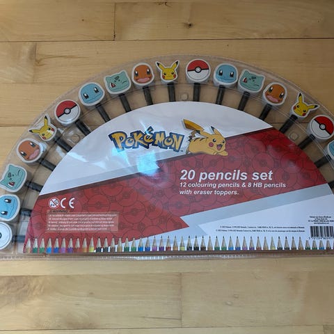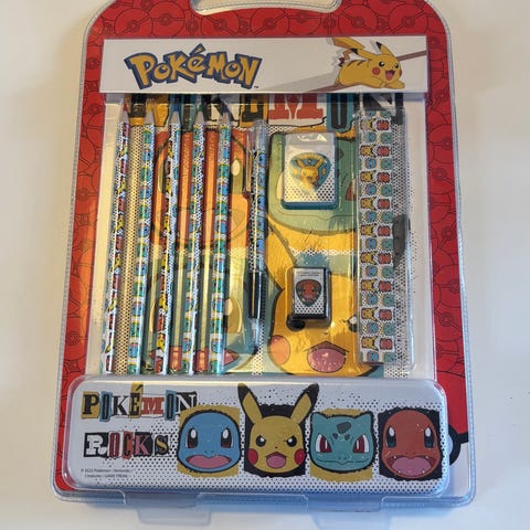 Pokémon Blyantsæt med Pikachu motiv i blå farve. Indeholder farveblyanter, lineal og viskelæder. Egnet til børn og skolebrug.