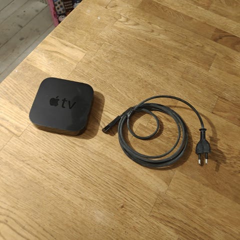Apple TV HD (3. generation) med fjernbetjening. Modelnummer: A1469.
