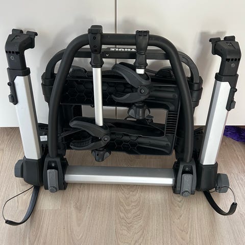 Kvalitets cykelholder fra Thule, solid og meget stabil. Kun brugt ca. 7 gange og fremstår i rigtig god stand. Nem og hurtig montering på bagklap, plads til 2 cykler og skånsom mod bilen.