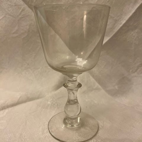 Vintage glas hvidvinsglas sæt bestående af 2 stk. Hvert glas har et forskelligt mønster i klart glas med stilk. Egnet til servering af hvidvin eller lignende drikkevarer.
