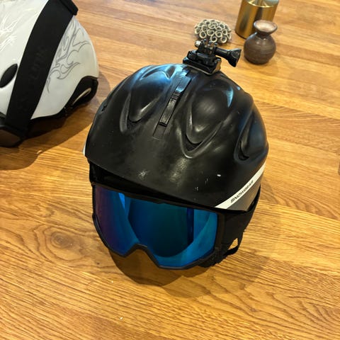 Salomon skihjelm med integreret visir i blå.