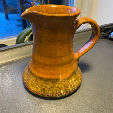 HPK Keramik skål i gul og brun keramik med bølget kant. Skålen har en rund fod og er håndlavet med unikke farvemønstre.