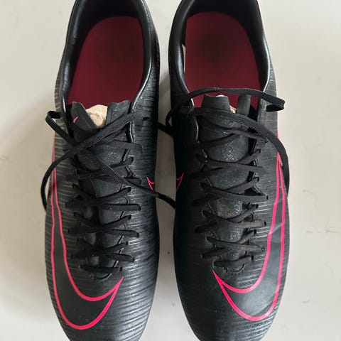 Nike Mercurial fodboldstøvler i grå farve med pink detaljer. Fodboldstøvlerne er i størrelse 40 og har snørebånd og knopper under sålen til brug på græsbaner.