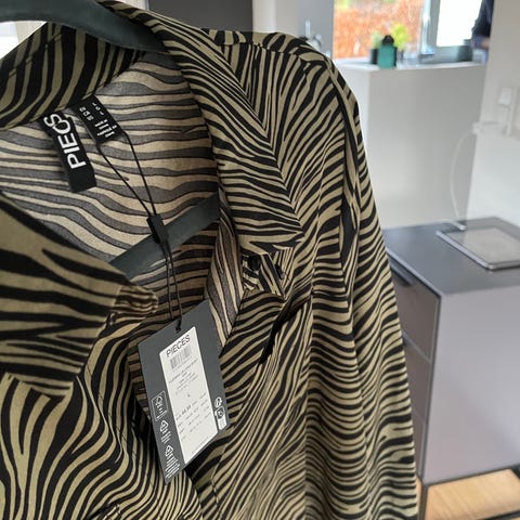 Pieces PcZebra. Både bukser og skjorte er i polyester.