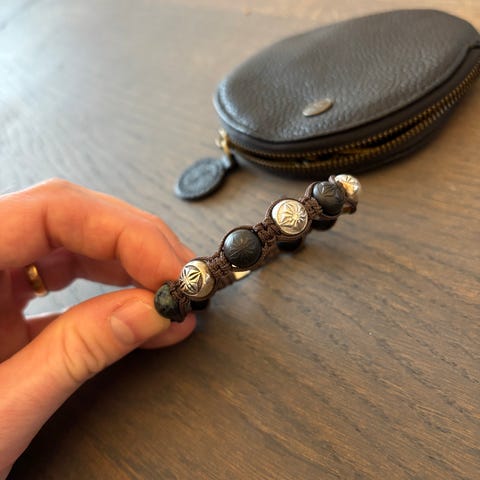 Armbåndet kan knyttes om i lige den farve du ønsker i Shamballa butik i København