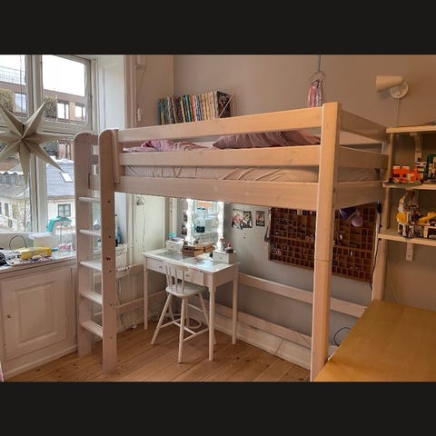 Flexa Højseng i lyst træ med sofa