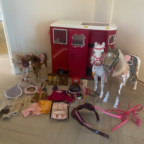 Det populære Our Generation og meget af det med tilbehør. Rigtig flot og meget udstyr og ting til dukker og heste og stald mv. af god stand.