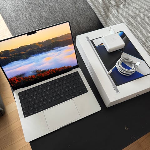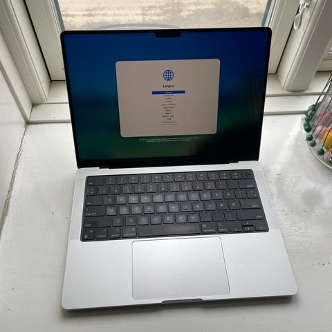 Splinterny og uåbnet MacBook Pro M1 Pro.