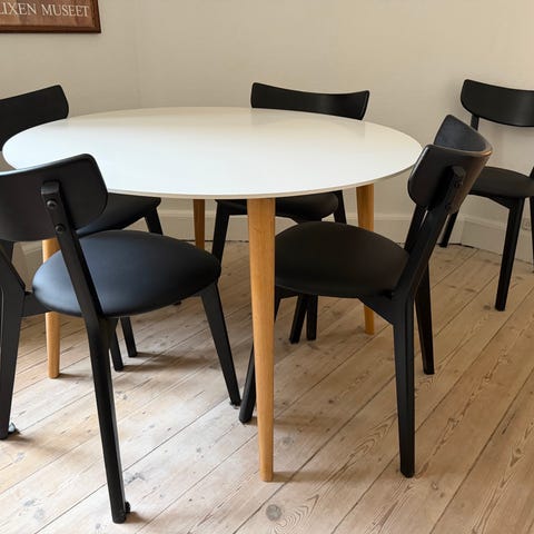 Jeg sælger fire af disse super flotte NOAK V2 spisebordsstole i egetræ fra ILVA. De fremstår som nye, og derfor meget velholdte. 😊