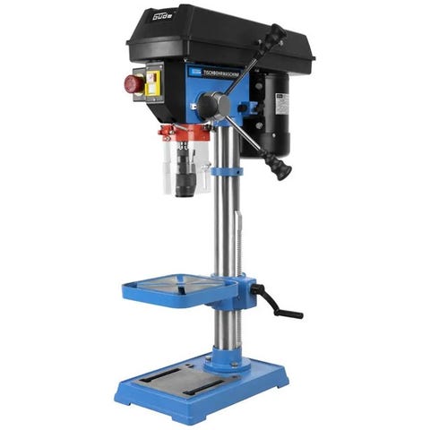 Guede/Lustung Boremaskine med en effekt på 600 W og en spænding på 230 V. Enkelfaset motor med en strømstyrke på 2,5 A og en maks omdrejningshastighed på 2500 omdr./min. Maskinen har et justerbart arbejdsbord til forskellige højde.