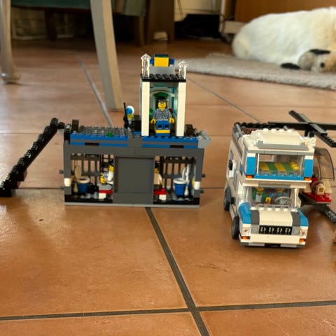 LEGO City sæt med politihelikopter, bjerghytte, lille bil og figurer. Indeholder flere elementer til leg og opbygning i LEGO City temaet.