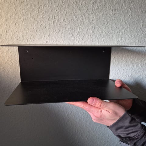 Helt ny hylde, aldrig pakket ud af plastikken. Billede fra hjemmeside indsat, så man kan se hvordan den ser ud. Sort metal.
