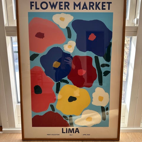 Anne Just Have plakat med motiv af hvide og gule blomster. Plakaten har et detaljeret blomsterdesign og er velegnet til vægdekoration.