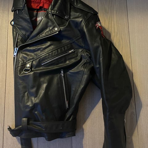 En læderjakke fra danske dragtdesigneren for Triumph riders, str. 48 - 50.