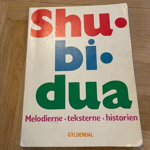 Gyldendal Shu-bi-dua bog med melodier, tekster og historien.