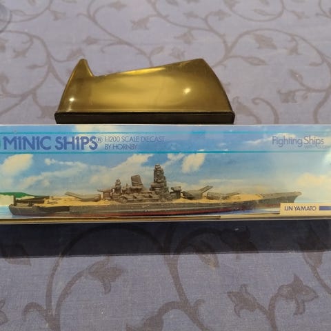 HMS VANGUARD i metal i original kasse, der mangler 1 af endestykkerne. Der er en smule afslag i maling på den ene side. Pris sat herefter.